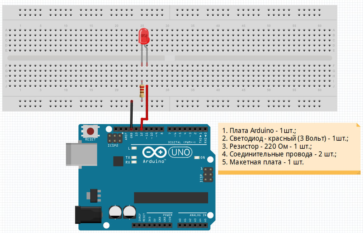 | 001 | Мигание светодиодом | ![]() |